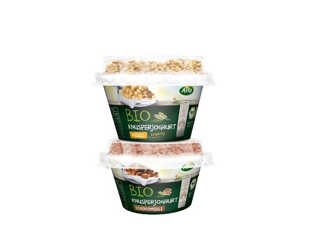 Joghurt schmeckt lecker - aber manchmal fehlt das gewisse Extra, um den Genussmoment perfekt zu machen. Der neue Arla BIO Knusperjoghurt verleiht bestem Bio-Natur-Joghurt dank knusprigem Cerealien-Topping den besonderen Pfiff. So sorgen zwei leckere Sorten ab Ende April für doppelten Knuspergenuss. Schokofans werden die Variante "Schokomüsli" lieben, aber auch die Variante "Crunchy Müsli" verspricht leckerste Knuspermomente.