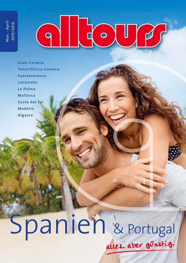 Neben dem Ausbau der Exklusivität setzt alltours bei seinem Kanaren-Programm auf Qualität und Preis-Leistungs-Stärke. Rund zwei Drittel des Angebots auf den Kanarischen Inseln haben mindestens 4 Sterne. Davon sind knapp die Hälfte Luxusanlagen mit 4,5 oder 5 Sternen. Eine Woche Urlaub mit Flug, Transfers, Reiseleitung und All-inclusive-Verpflegung gibt es im Winter bei alltours bereits ab 494,- Euro pro Person im Doppelzimmer.