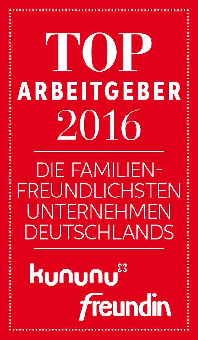 Die Medienmarke Freundin und die Arbeitgeber-Bewertungsplattform kununu haben erstmals die familienfreundlichsten Arbeitgeber Deutschlands ermittelt. Die Vereinbarkeit von Familie und Beruf spielt bei der Wahl des Arbeitgebers eine wichtige Rolle. Mit dem Ranking "Familien-freundlichste Arbeitgeber Deutschlands" sorgen kununu und Freundin für Orientierungshilfe und Transparenz am Arbeitsmarkt.