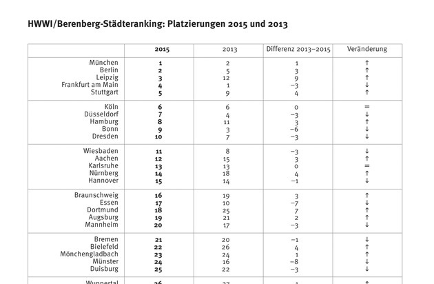 Das HWWI/Berenberg-Städteranking 2015 können Sie unter https://www.berenberg.de/Staedteranking-2015.html herunterladen.