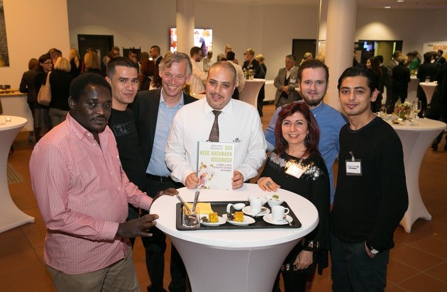 Nach Monaten des Rezeptsammelns, des Probekochens, des Abschmeckens und Verfeinerns ist es soweit: Das Neue-Nachbarn-Kochbuch, ein Benefizprojekt der Schlüterschen Verlagsgesellschaft, ist ab sofort im Handel erhältlich. Unter dem Motto "8 Länder, 8 Köche, 50 Rezepte für mehr Miteinander" ist das Buch inspiriert von der Heimatküche nach Deutschland geflüchteter Menschen. Mit einer kulinarischen Entdeckungsreise für 300 Gäste feierten die Schlütersche und nobilis Esslust am 20. Oktober 2016 im eigens dafür hergerichteten Verlagshaus die Veröffentlichung des Titels.