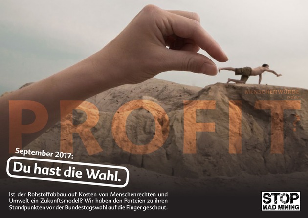 "Beim Rohstoffabbau werden seit vielen Jahren immer wieder massive Menschenrechtsverletzungen dokumentiert. Doch CDU/CSU, FDP und Teile der SPD nehmen das Thema bis heute nicht ausreichend ernst", bedauert Michael Reckordt von PowerShift. Diese Parteien wollen wie bisher mit freiwilligen Maßnahmen die Menschenrechte in Lieferketten deutscher Unternehmen schützen. Die Regierungsparteien CDU/CSU und SPD verweisen auf den Nationalen Aktionsplan 'Wirtschaft und Menschenrechte', den die Bundesregierung Ende 2016 verabschiedete. Die vier Organisationen - Christliche Initiative Romero (CIR), INKOTA, Kampagne Bergwerk Peru und PowerShift - halten diesen Aktionsplan aber für unzureichend, da er lediglich unverbindliche Erwartungen an Unternehmen formuliert. Sie fordern gesetzliche Regelungen zur menschenrechtlichen Sorgfaltspflicht von importierenden Unternehmen.