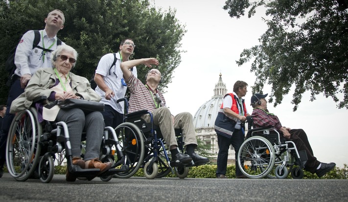 Vom 26. September bis 3. Oktober sind mehr als 800 Teilnehmer der Malteser Wallfahrt für Menschen mit Behinderung auf Pilgerreise in Rom. 200 Menschen, die zum Teil intensiver Hilfe und Betreuung rund um die Uhr bedürfen, werden von freiwilligen Ärzten, Pflegern und Krankenschwestern sowie Seelsorgern begleitet. Aus allen Teilen Deutschlands startet die Wallfahrt in speziell hergerichteten Bussen und per Flugzeug in die Ewige Stadt. Für viele der eingeschränkten Menschen ein einmaliges Erlebnis, weil der Weg über große Entfernungen, Kopfsteinpflaster, unzählige Stufen und bei hohen Temperaturen normalerweise zu viele Hindernisse birgt. Dank zahlreicher vatikanischer und italienischer Helfer aber gelingt es, die Hürden zu umgehen und die spirituelle Reise ins Zentrum der katholischen Christenheit zu genießen. "Die römische Polizei wird die 20 Busse in Kolonne während der Rushhour durch den Stadtverkehr leiten. Im Vatikan warten Rampen statt Treppen auf die Rollstuhlfahrer und ihre Begleiter", berichtet der Einsatzleiter der 11. Malteser Romwallfahrt, Benedikt Liefländer.