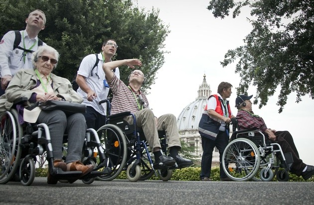 Vom 26. September bis 3. Oktober sind mehr als 800 Teilnehmer der Malteser Wallfahrt für Menschen mit Behinderung auf Pilgerreise in Rom. 200 Menschen, die zum Teil intensiver Hilfe und Betreuung rund um die Uhr bedürfen, werden von freiwilligen Ärzten, Pflegern und Krankenschwestern sowie Seelsorgern begleitet. Aus allen Teilen Deutschlands startet die Wallfahrt in speziell hergerichteten Bussen und per Flugzeug in die Ewige Stadt. Für viele der eingeschränkten Menschen ein einmaliges Erlebnis, weil der Weg über große Entfernungen, Kopfsteinpflaster, unzählige Stufen und bei hohen Temperaturen normalerweise zu viele Hindernisse birgt. Dank zahlreicher vatikanischer und italienischer Helfer aber gelingt es, die Hürden zu umgehen und die spirituelle Reise ins Zentrum der katholischen Christenheit zu genießen. "Die römische Polizei wird die 20 Busse in Kolonne während der Rushhour durch den Stadtverkehr leiten. Im Vatikan warten Rampen statt Treppen auf die Rollstuhlfahrer und ihre Begleiter", berichtet der Einsatzleiter der 11. Malteser Romwallfahrt, Benedikt Liefländer.