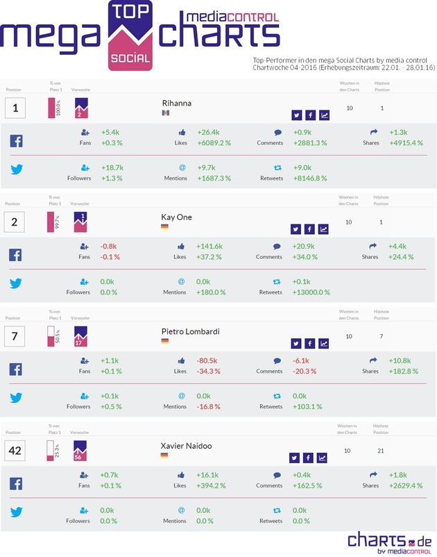 Detaillierte Abfrage der gesamten TOP 3000 mega Social Charts auf Anfrage: l.niedree@media-control.de