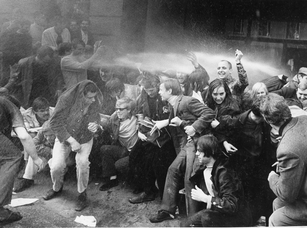18 ausgewählte Aufnahmen aus seiner dpa-Zeit geben das Nachrichtengeschehen der 60er und 70er Jahre wieder. Aus einem Fundus von mehreren tausend Motiven hat Rehm außergewöhnliche Zeitzeugnisse ausgewählt. Darunter unter anderem die vier Angeklagten im Kaufhaus-Brandstifter-Prozess Thorwald Proll, Horst Söhnlein, Andreas Baader und Gudrun Ensslin im Frankfurter Landgericht, Altkanzler Konrad Adenauer beim Signieren seiner Memoiren in Bonn, eine Sicherungskompanie des Heimatschutzkommandos beim Einsatz mit Fahrrädern, der erste Schönheitssalon für Männer in Frankfurt oder das preisgekrönte Motiv von Zirkuselefanten, die in Frankfurt in einen Güterwagen einsteigen. Ein ganz besonderes Foto gelang ihm im Mai 1968, als er die Studentenunruhen an der Frankfurter Uni dokumentierte. Sein Foto von mit Feuerwehrschläuchen unter Wasser gesetzten Streikposten des SDS (Sozialistischer Deutscher Studentenbund) und VDS (Verband Deutscher Studentenschaften) ging um die Welt und bescherte ihm eine Nominierung für den begehrten Pulitzerpreis.