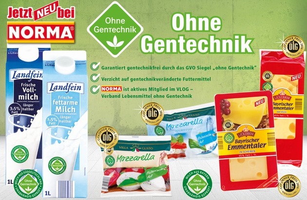 Seine abermalige Vorreiterrolle unterstreicht NORMA nicht zuletzt damit, dass erstmals der Mozzarella der NORMA-Marke Villa Gusto in der 125 g-Packung garantiert gentechnikfrei hergestellt und somit mit dem Label "Ohne Gentechnik" gekennzeichnet wird. Genau das kann jetzt auch die NORMA-Frischmilch für sich in Anspruch nehmen: Auf den 1-Liter-Packungen Landfein Frische Vollmilch (3,5 Prozent Fett) und Landfein Frische Fettarme Milch (1,5 %) finden NORMA-Kunden wieder gut sichtbar das grüne Label. Beim Engagement für gentechnikfreie Lebensmittel gehören die NORMA-Filialen zu den Schrittmachern - mit frischen Eiern in allen Regionen bereits verlässlich gentechnikfrei. NORMA unterstreicht seinen Einsatz durch die aktive Mitgliedschaft im Verband Lebensmittel ohne Gentechnik (VLOG), dem der Discounter aus Nürnberg im Sommer 2015 beigetreten ist.