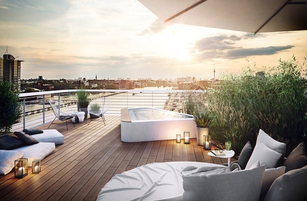 Ein Entwurf des international renommierten Architekturbüros GRAFT wird seit Anfang des Jahres in Berlin umgesetzt. Direkt am Friedrichshainer Spreeufer entstehen im Auftrag des Projektentwicklers Bauwerk Capital zwei neue Wohnhäuser mit insgesamt 161 Eigentumswohnungen. Visualisierung WAVE: © Bauwerk Capital GmbH & Co KG