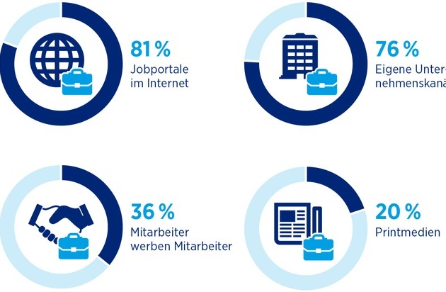 Auch die weltweite Suche spielt eine vergleichsweise marginale Rolle. Ungeachtet der hohen Bedeutung der chinesischen, amerikanischen und indischen Märkte, finden nur vier bis sechs Prozent der befragten Unternehmen neue Mitarbeiter in diesen Ländern. Die Ergebnisse des HR-Reports zeigen jedoch, dass Industrieunternehmen viel häufiger (40 %) im Ausland rekrutieren, als Dienstleister (11 %). Bei Unternehmen, die Services bieten, spielen die Landessprache und -kultur bei der Mitarbeitersuche naturgemäß eine wesentlich wichtigere Rolle.