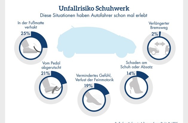 Zahl des Tages: Fast die Hälfte (49 Prozent) der Autofahrer sind beim Autofahren mit ungeeignetem Schuhwerk schon einmal in Gefahrensituationen geraten