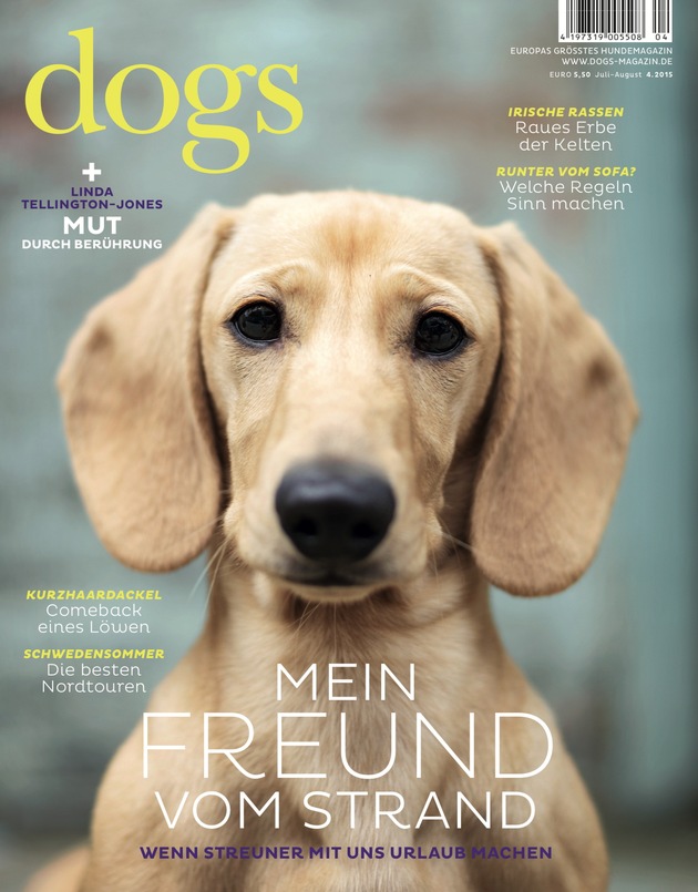 DOGS ist das Lifestyle-Magazin für Hundefreunde - einzigartig auf dem deutschen Markt. Es handelt von der Beziehung zwischen Mensch und Hund. Die exklusive Themenmischung verbindet Emotion und Wissen auf höchstem Niveau: Geschichten aus der Welt der Vierbeiner, Spaziergänge mit prominenten Hundebesitzern, Reise- und Lifestyle-Reportagen sowie viel Wissenswertes über Erziehung, Verhalten und Psychologie. Einzigartige Bildstrecken von internationalen Fotografen und außergewöhnliche Illustrationen vermitteln ein neues, oft überraschendes Image von Hunden und geben dem Magazin seinen besonderen Charakter. DOGS erscheint sechs Mal im Jahr und kostet 5,50 Euro.