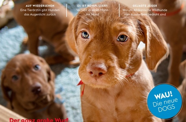 Emotionaler, positiver, lebensnäher: Mit der aktuellen Ausgabe (EVT 16.07.2018) präsentiert sich Europas größtes Hundemagazin DOGS optisch erneuert und mit inhaltlich neuer Ausrichtung. Im Mittelpunkt stehen künftig noch mehr große Geschichten über Menschen und ihre Hunde - vermittelt über packende Reportagen und ausdrucksstarke Bildstrecken.