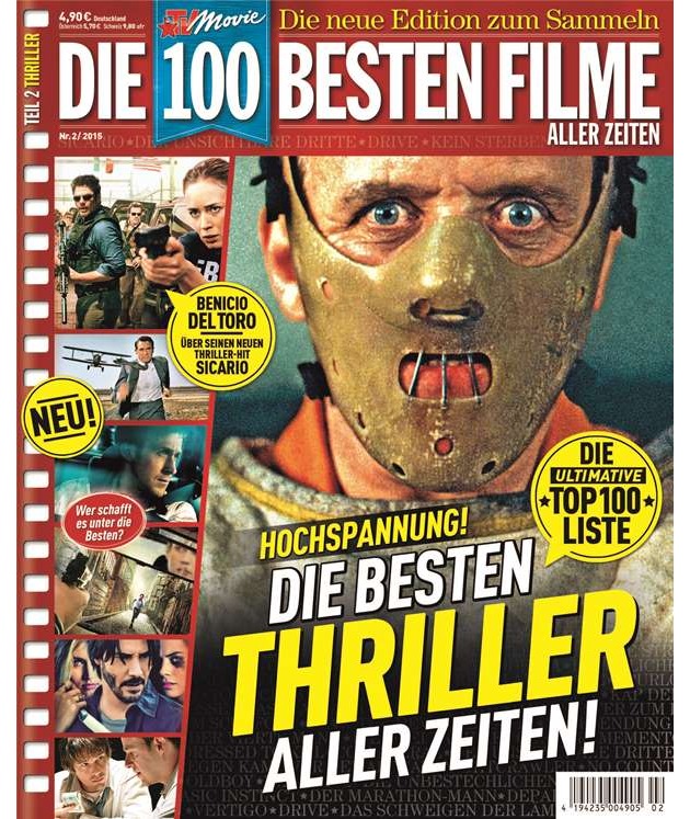 Von Todesangst bis Sensationsgier: Der Thriller spielt mit den Emotionen seiner Zuschauer und peitscht sie durch ein Wechselbad aus Aufregung und Erleichterung. In diesem Genre wird der klassische Held mit ausweglosen Situationen konfrontiert. Unter dem Titel "Die 100 besten Filme aller Zeiten" präsentiert TV Movie in der neuen Premium-Sammeledition (Ausgabe 2/2015, EVT 23.10.) grenzenlosen Wahnsinn, Obsession und Rache - kurzum: Die besten Thriller aller Zeiten.