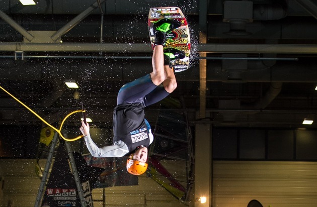 Bereits zum vierten Mal finden die Wake-Masters im Rahmen der Berliner Bootsmesse statt - 1.000 Quadratmeter großer Eventpool mit Seilzuganlage bietet ideale Bedingungen für Wakeboardprofis und solche, die es werden wollen