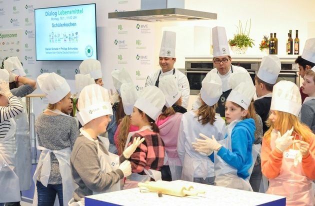 Grüne Woche 2017: Dialog Lebensmittel - Ernährungsbildung in Theorie und Praxis - Kochen mit Spitzenköchen auf dem Gemeinschaftsstand von BLL und BVE