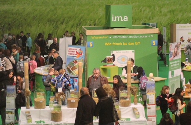 Gesunde Ernährung, die Herkunft unserer Nahrungsmittel sowie deren Wertschöpfungsketten sind Themen, mit denen sich der i.m.a - information.medien.agrar e.V. schon immer befasst hat. Zur Internationalen Grünen Woche stehen sie nun auch im Mittelpunkt der Gemeinschaftsschau vom "ErlebnisBauernhof", bei dem sich der i.m.a e.V. mit Partnern wie dem Deutschen Bäckerhandwerk und dem "Bäckman"-Backbus präsentiert. Auch dort ist Mitmachen angesagt: Vormittags können Schüler Brot backen und an den Wissensstationen ihr Lieblingsfrühstück zusammenstellen, nachmittags und an den Wochenenden wird Besuchern die Erzeugung und Verarbeitung unserer Nahrungsmittel erläutert. Auch dabei wird zum Ausprobieren und Experimentieren eingeladen.