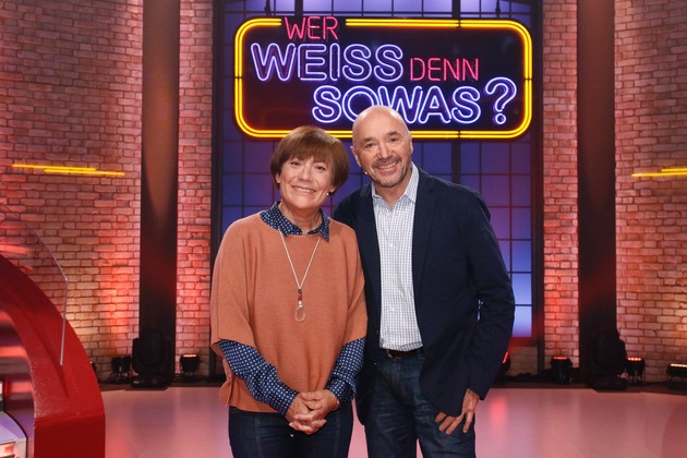 Das Erste: Die Ski-Legenden Mittermeier und Neureuther im Ehepaar-Duell "Wer weiß denn sowas?" - Kai Pflaume moderiert das schlaue Wissensspiel mit Bernhard Hoëcker und Elton