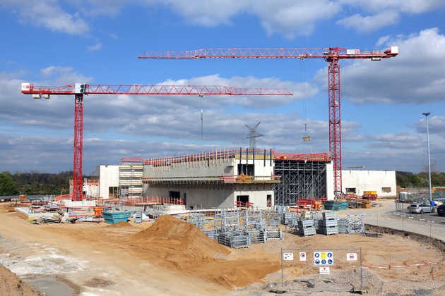 Das Gros der verarbeiteten Materialien kam bisher beim Bau des Technikgebäudes mit dem fertiggestellten Untergeschoss zum Einsatz. "Insgesamt haben wir bereits 4.000 Kubikmeter Beton verarbeitet. Das entspricht etwa vier großen Würfeln mit einer Kantenlänge von je zehn Metern", erläutert Steup die Dimensionen.