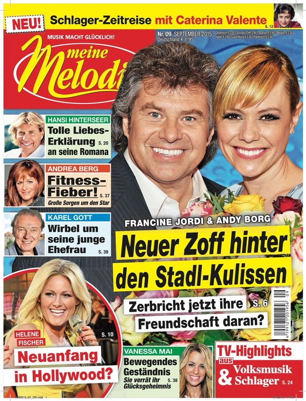 Auf das Moderatoren-Duo der neuen "Stadlshow" wartet eine große Herausforderung - aber obwohl Francine Jordi (38) und Alexander Mazza (42) sich erst im Rahmen des offiziellen Auswahlverfahrens kennengelernt haben, blicken sie äußerst zuversichtlich auf ihre künftige Zusammenarbeit. "Francine und ich waren beim Casting keine Paarung. Ich kannte Francine als Schlagersängerin. Bei unserem ersten Treffen war schnell klar, dass wir einen ähnlichen Humor haben und gut miteinander klarkommen werden", sagt Mazza in einem Exklusiv-Interview der Musikzeitschrift MEINE MELODIE (9/2015; EVT: 20. August). Auch Francine Jordi betont, dass sie und Mazza getrennt zu dem Casting eingeladen worden seien. "Natürlich wollte ich Alexander vor meiner Entscheidung persönlich kennenlernen. Gott sei Dank waren wir sofort auf einer Wellenlänge", sagt die Sängerin. Die beiden werden am 12. September ihr Debüt als Moderatoren-Duo der "Stadlshow" geben. Das Erste, ORF 2 und SRF 1 übertragen die Nachfolge-Sendung des legendären "Musikantenstadl" ab 20:15 Uhr live aus Offenburg.