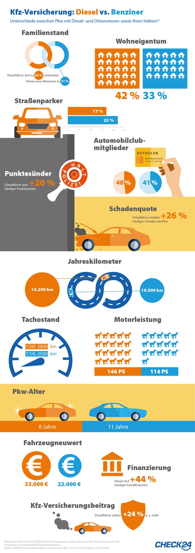 Pkw mit Dieselmotoren unterscheiden sich nicht nur bei Spritkosten und Abgaswerten von Benzinern. Die Fahrzeuge und vor allem ihre Halter sind in vielen Punkten verschieden.*
