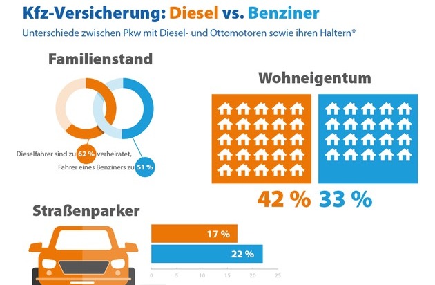 Pkw mit Dieselmotoren unterscheiden sich nicht nur bei Spritkosten und Abgaswerten von Benzinern. Die Fahrzeuge und vor allem ihre Halter sind in vielen Punkten verschieden.*