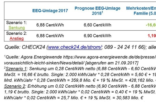 EEG-Prognose 2018: Maximal 17 Euro p. a. weniger Stromkosten für Familie