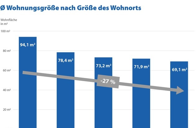Auffällig: In den 15 größten deutschen Städten liegt die angegebene Wohnfläche deutlich unter dem Bundesdurchschnitt (82,6 Quadratmeter).