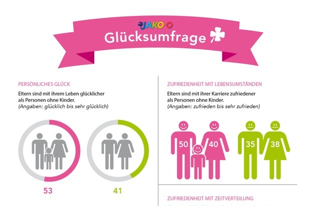 Die Glücksumfrage wurde im Rahmen der JAKO-O Familien-Aktion "Das Glück liegt in den kleinen Momenten" erstellt. Mit der Aktion möchte JAKO-O zeigen, wie schön und einmalig Familie in all ihren Facetten ist und gleichzeitig Familien ein Forum geben, ihre Geschichten zu erzählen. Unter www.jako-o.de/gluecksmomente kann jeder seine persönlichen Glücksmomente mit anderen teilen. Im Laufe des Jahres soll ein buntes Bild davon entstehen, wie vielfältig Familie heute gelebt wird. Unter allen Teilnehmern verlost das Unternehmen einen Familienurlaub.