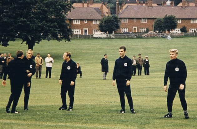 Die Rote Karte war noch nicht erfunden, die Bundesliga steckte in den Kinderschuhen. Die Fankultur bestand aus selbstgestrickten Schals. Viele Spieler hatten neben dem Fußball noch andere Jobs und schauten neidvoll nach England, wo ihre Kollegen schon Vollprofis waren. 1966 steht also für eine Zeitenwende im Fußball: Abschied vom fadenscheinigen Amateurmythos, Aufbruch in die Moderne. 1966 in England - das war nicht nur "Swinging London". Die DFB-Elf reiste in ein Land, in dem die Erinnerung an die Bombennächte des Zweiten Weltkriegs noch wach war. Und nicht zuletzt war England 1966 eine WM im Kalten Krieg, bei der die DFB-Elf im Halbfinale ihr erstes Pflichtspiel gegen eine Mannschaft der Sowjetunion absolvierte.