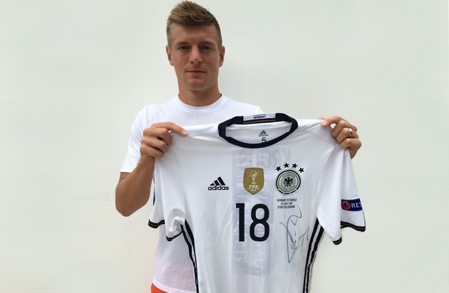 Toni Kroos stellt mit seinem Trikot aus dem EM-Halbfinale gegen Frankreich ein einzigartiges Andenken an den Fußballsommer 2016 zur Verfügung. Seit Freitag versteigert United Charity, Deutschlands größtes Charity-Auktionsportal, das getragene Trikot des Nationalspielers zugunsten seiner Stiftung.