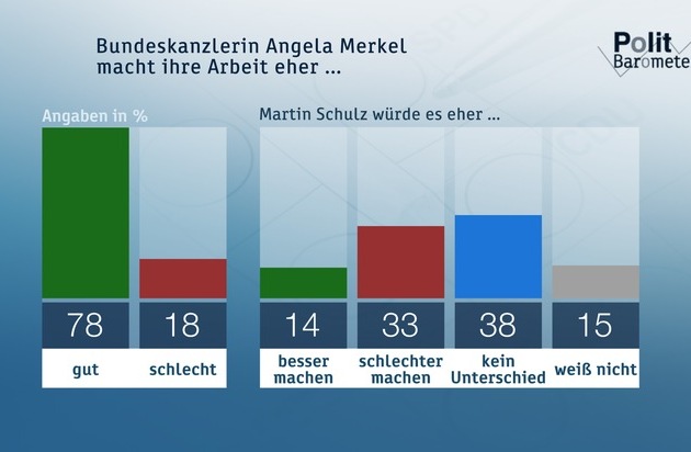K-Frage: Merkel weiter mit großem Vorsprung vor Schulz