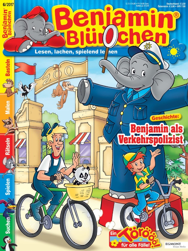 Seit 40 Jahren freuen sich Kinder wie Erwachsene gemeinsam mit Benjamin Blümchen die Welt zu entdecken. Mit der großen Geburtstagsausgabe feiert Egmont Ehapa zusammen mit dem liebenswürdigen Elefanten das seit vielen Jahren erfolgreiche Magazin. Als besonderes Highlight wartet auf die Kinder in der Geburtstagsausgabe ein riesiges Gewinnspiel mit über 50 tollen Preisen. Als Jubiläumsextra liegt dem Heft eine elektrische Polizeikelle bei, die sowohl in Rot als auch in Grün leuchten kann. Egal ob als Polizist, Astronaut, Feuerwehrmann oder Rennfahrer - der große Elefant macht getreu dem Motto "Ein Törööö für alle Fälle" in jeder Rolle eine klasse Figur. Zusammen mit seinen Freunden erlebt er viele Abenteuer und regt dabei zum Lesen, Entdecken und spielenden Lernen an.