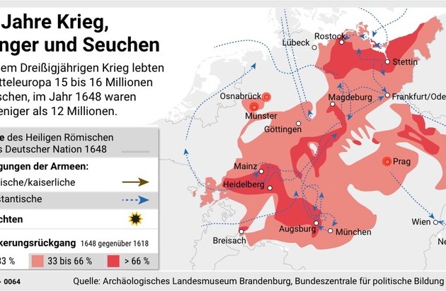 Und ein weiteres Beispiel: Wie lang müsste ein Text werden, der zeigt, wie groß der Bevölkerungsschwund im Dreißigjährigen Krieg in welcher Region war? Seeeehr lang! Die Webgrafik kann's besser und schneller.