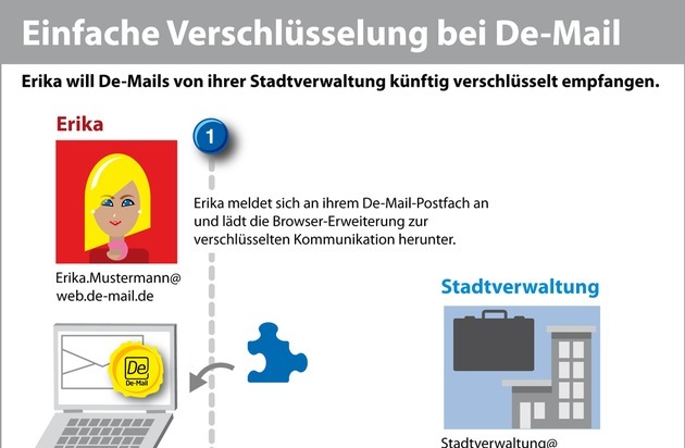 Erika will in Zukunft die De-Mails ihrer Stadtverwaltung verschlüsselt empfangen.