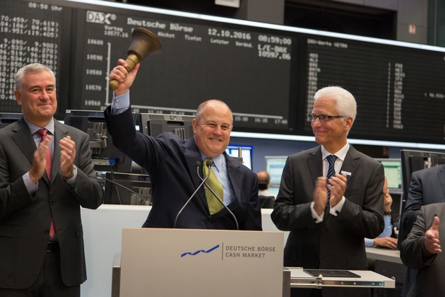 Fresenius Medical Care feiert 20-jähriges Bestehen - CEO Rice Powell läutet Börsenhandel in der Frankfurter Wertpapierbörse ein